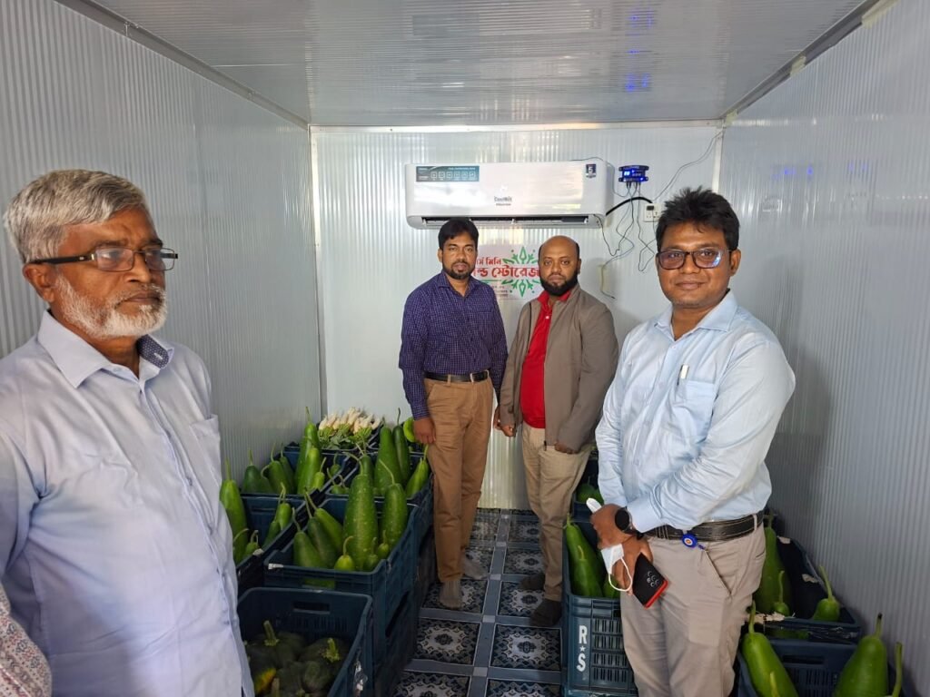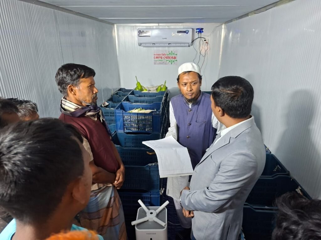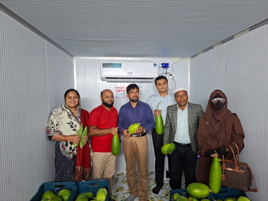 ষিবান্ধব সরকারের গৃহীত যুগোপযোগী নীতিমালার ফলে বাংলাদেশ বর্তমানে বিশ্ব কৃষি খাতে একটি রোল মডেল হিসেবে প্রতিষ্ঠিত হয়েছে। কৃষির সকল সেক্টরেই আমাদের সাফল্য উল্লেখযোগ্য। মাঠ ফসল, বিশেষ করে দানা জাতীয় শস্য উৎপাদনে বিগত কয়েক বছরে ধারাবাহিক অগ্রগতি অর্জিত হয়েছে। এ অর্জন ধরে রাখার পাশাপাশি উৎপাদিত কৃষিপণ্যের নিরাপদ সংরক্ষণ, গুণগত মান বজায় রাখা এবং কার্যকর বাজার ব্যবস্থাপনা নিশ্চিত করা অত্যন্ত জরুরি হয়ে পড়েছে। কৃষি মন্ত্রণালয়, কৃষি সম্প্রসারণ অধিদপ্তর এবং মাঠপর্যায়ের কৃষকদের নিরলস প্রচেষ্টার ফলে দেশে ফল, সবজি ও অন্যান্য উদ্যান ফসলের উৎপাদন উল্লেখযোগ্যভাবে বৃদ্ধি পেয়েছে। তবে পর্যাপ্ত কোল্ড স্টোরেজ ও আধুনিক সংগ্রহোত্তর ব্যবস্থাপনার অভাবে উৎপাদিত পণ্যের একটি বড় অংশ নষ্ট হয়ে যায়, ফলে কৃষক ন্যায্যমূল্য থেকে বঞ্চিত হন এবং জাতীয় পর্যায়ে অর্থনৈতিক ক্ষতি হয়। উন্নত দেশগুলোতে আধুনিক কোল্ড চেইন ও সংরক্ষণ প্রযুক্তির মাধ্যমে অল্প জায়গায় অধিক পরিমাণ কৃষিপণ্য দীর্ঘ সময় নিরাপদে সংরক্ষণ করা হচ্ছে, যা তাদের কৃষি বাণিজ্য সম্প্রসারণে গুরুত্বপূর্ণ ভূমিকা রাখছে। বাংলাদেশের প্রেক্ষাপটে গ্রামীণ ও কৃষক পর্যায়ে সহজপ্রাপ্য ফার্মার্স মিনি কোল্ড স্টোরেজ স্থাপন করে কৃষিপণ্যের অপচয় হ্রাস, সংরক্ষণ সক্ষমতা বৃদ্ধি এবং কৃষকের আয় বৃদ্ধির সুযোগ সৃষ্টি করা এখন সময়ের দাবি। বর্তমানে কৃষি সম্প্রসারণ অধিদপ্তরের আওতায় দেশের বিভিন্ন জেলায় উদ্যান কার্যক্রম সম্প্রসারণ অব্যাহত রয়েছে। উৎপাদন বৃদ্ধির ধারাবাহিকতা বজায় রাখতে সংগ্রহোত্তর অবকাঠামো শক্তিশালী করা অপরিহার্য। সরকার দেশের পশ্চাৎপদ এলাকার কৃষির সার্বিক উন্নয়নে বিশেষ গুরুত্বারোপ করেছেন এবং বিভিন্ন নীতিমালা গ্রহণ করেছেন। শস্যের নিবিড়তা বৃদ্ধির মাধ্যমে ফসল উৎপাদন বৃদ্ধি যেমন সরকারের অগ্রাধিকার পরিকল্পনা, তেমনি সীমিত ভূমি সম্পদের সর্বোত্তম ব্যবহার নিশ্চিত করে খাদ্য নিরাপত্তা অর্জন এবং দারিদ্র্য হ্রাস করাও সমান গুরুত্বপূর্ণ। উপরোক্ত বিষয়াবলীর প্রেক্ষিতে খাদ্য নিরাপত্তা নিশ্চিতকরণ ও দারিদ্র্য বিমোচনের লক্ষ্যে খামারের উৎপাদনশীলতা বৃদ্ধির পাশাপাশি আধুনিক প্রযুক্তিনির্ভর পরিবেশবান্ধব সংগ্রহোত্তর ব্যবস্থাপনা জোরদার করা প্রয়োজন। প্রকল্পের সুনির্দিষ্ট উদ্দেশ্য (SPECIFIC OBJECTIVE OF THE PROJECT): প্রকল্পের সামগ্রিক উদ্দেশ্য হলো আধুনিক ফার্মার্স মিনি কোল্ড স্টোরেজ স্থাপনের মাধ্যমে কৃষিপণ্যের সংগ্রহোত্তর ক্ষতি হ্রাস, কৃষকের ন্যায্যমূল্য নিশ্চিতকরণ, কর্মসংস্থান সৃষ্টি এবং কৃষিভিত্তিক অর্থনৈতিক কর্মকাণ্ড সম্প্রসারণের মাধ্যমে কৃষকের আয় বৃদ্ধি ও টেকসই কৃষি উন্নয়ন নিশ্চিত করা